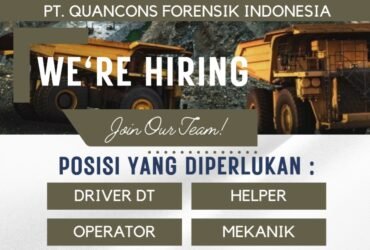 PT Quancons Forensik Indonesia (QFI) yang bergerak dalam aktivitas pertambangan membuka lowongan kerja untuk 4 posisi, diantaranya, Driver DT, Operator, Helper dan Mekanik.