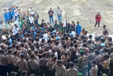 Aksi demontrasi Aliansi Amanah Penderitaan Rakyat (AMPERA) menolak kenaikan harga BBM di Kantor DPRD Bontang sempat berjalan ricuh. Senin, (12/9/2022).
