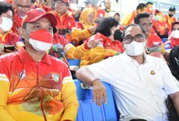 Wakil Ketua DPRD Kaltim Seno Aji menghadiri puncak peringatan Hari Olahraga Nasional (Haornas) ke 39 tahun 2022 di Stadion Batakan Balikpapan, Jumat (9/9/2022).