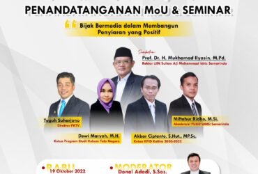 Komisi Penyiaran Indonesia Daerah (KPID) Kaltim dan Universitas Muhammadiyah Kaltim (UMKT) bersepakat menjalin kerja sama, ditandai dengan penandatanganan MoU pada Senin (10/10/2022)