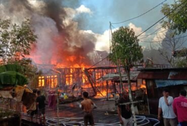 6 unit rumah di Kampung Muara Baroh, Kecamatan Muara Pahu, Kabupaten Kutai Barat, hangus terbakar pada Rabu, 11 Mei 2022 siang.