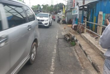 Trotoar di sepanjang Jalan WR Supratman, Kecamatan Bontang Selatan tidak layak dilalui pejalan kaki.