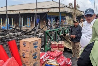 Walikota Bontang Basri Rase turun langsung menemui korban kebakaran di RT 06, Kelurahan Bontang Kuala dan menyalurkan bantuan, Sabtu (25/6/2024) siang.