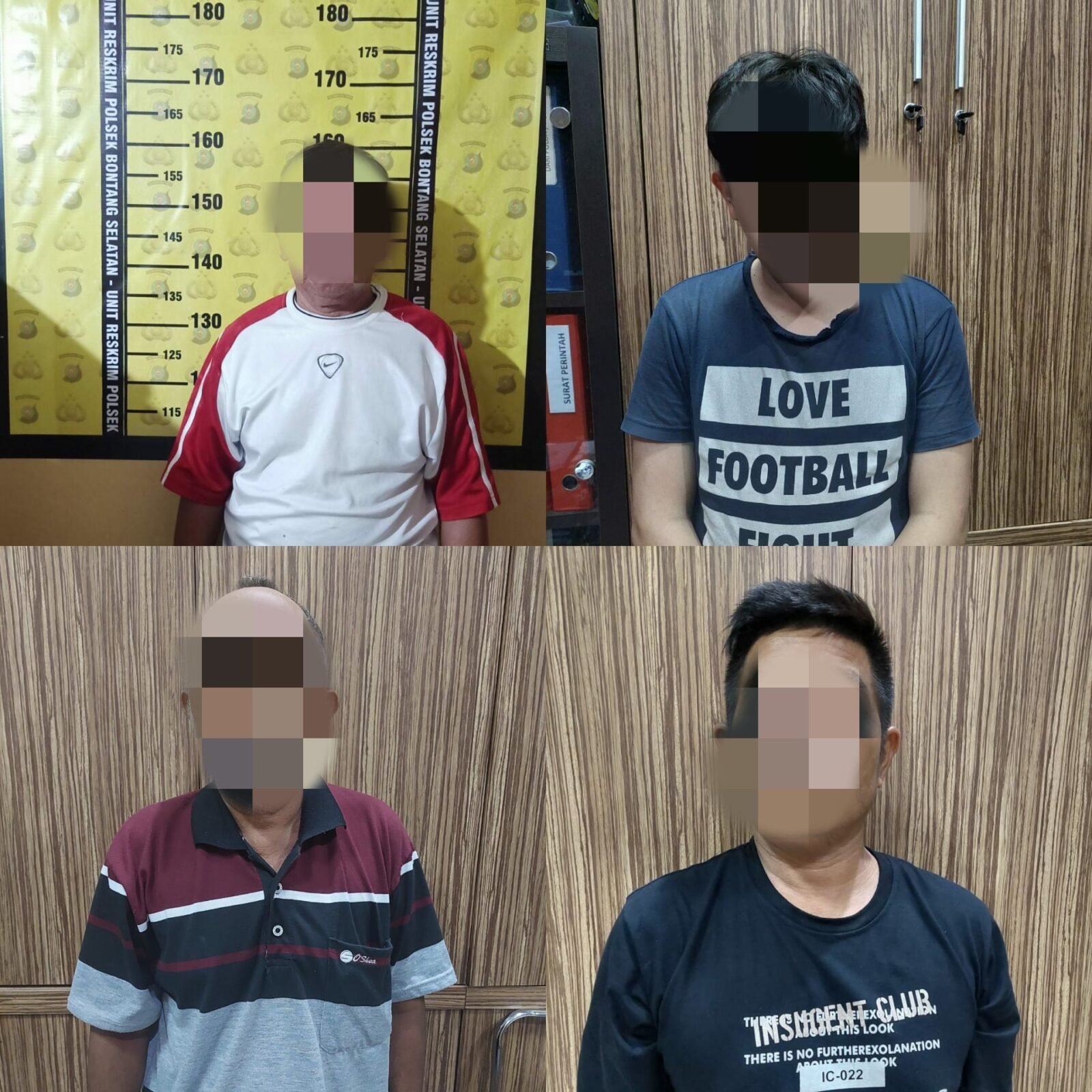 Keempat pelaku dijerat pasal 303 KUHP dengan ancaman hukuman penjara maksimal 10 tahun.