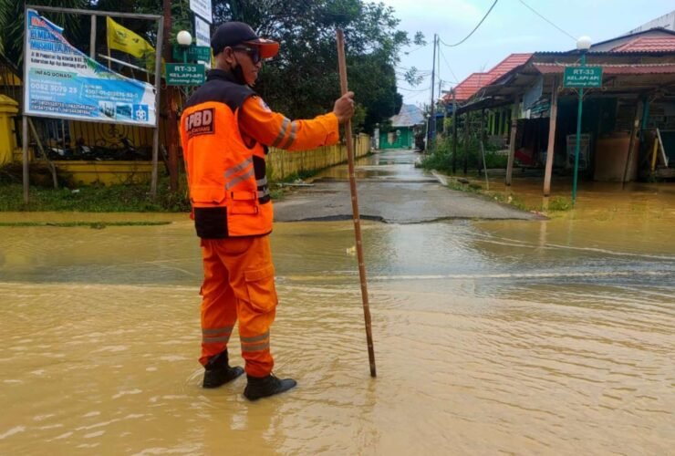 Badan Penanggulangan Bencana Daerah (BPBD) Kota Bontang melakukan pemantauan di sejumlah titik rawan banjir, Kamis (3/11/2022). ...