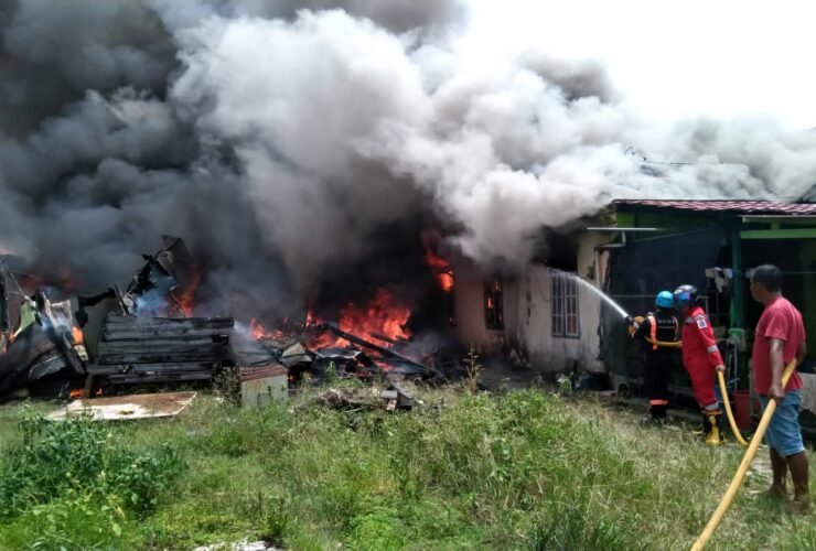 Badan Penanggulangan Bencana Daerah (BPBD) Bontang menerjunkan personil lengkap saat memadamkan kobaran api, di Jalan Selat Bali, RT 07, Tanjung Laut, Minggu (6/11/2022), sekira pukul 11.30 Wita. ...