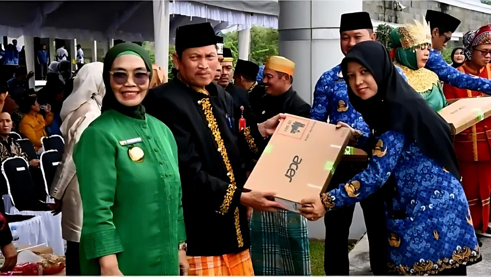 Pada momen peringatan Hari Pendidikan Nasional (Hardiknas) 2025, Disdikbud bersama Pemerintah Kota Bontang menyerahkan secara simbolis perangkat laptop untuk tenaga pendidik jenjang SD dan SMP negeri di Halaman Kantor Wali Kota Bontang Lestari, Jumat (2/5/2025).