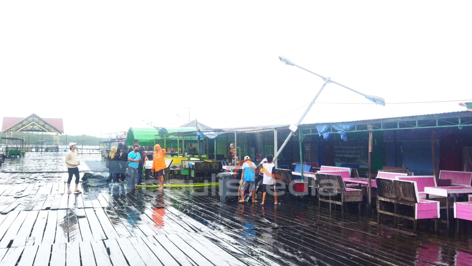 Populism.id, Bontang – Hujan disertai angin kencang merobohkan satu tiang lampu dan merusak 7 cafe di objek wisata Bontang Kuala, sekira pukul 12.00 Wita, Senin 25 April 2022.
