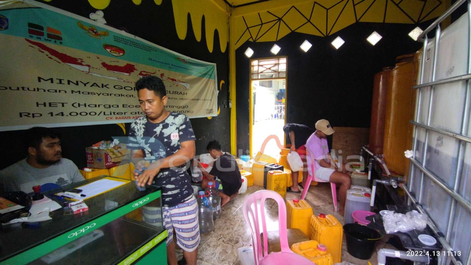 Populism.id, Bontang – 14 ton minyak goreng curah bersubsidi dari Kota Balikpapan masuk ke Bontang malam tadi, Selasa 12 April 2022. Penyalurannya dilakukan di Pujasera Ikan Bakar Pasar Rawa Indah.