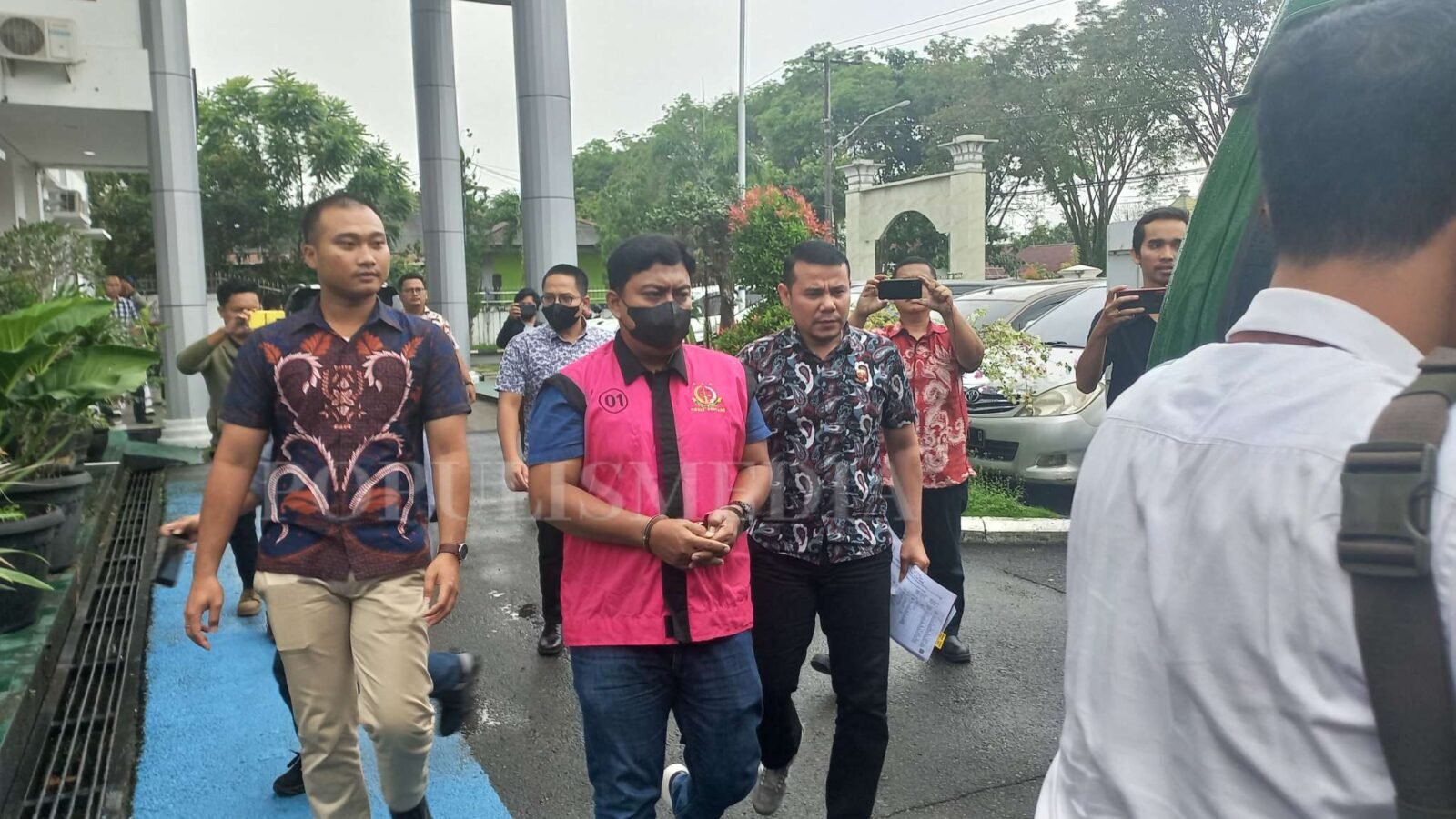 Terpidana kasus korupsi lahan bandara Bontang, Dimas Saputro digiring masuk masuk mobil tahanan. (Doc. Iwan/Populism.id)