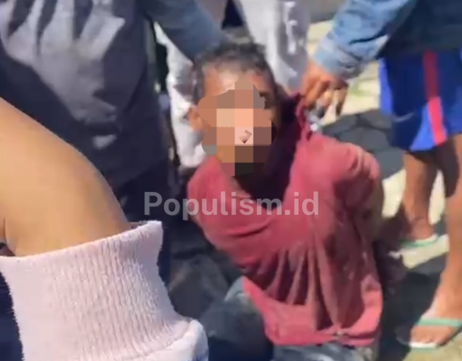 Pemuda ini akhirnya berhasil diamankan. Petugas polisi yang dibantu puluhan warga berhasil membekap pemuda itu dengan cara dibanting ke tanah dan dipegang beramai-ramai.