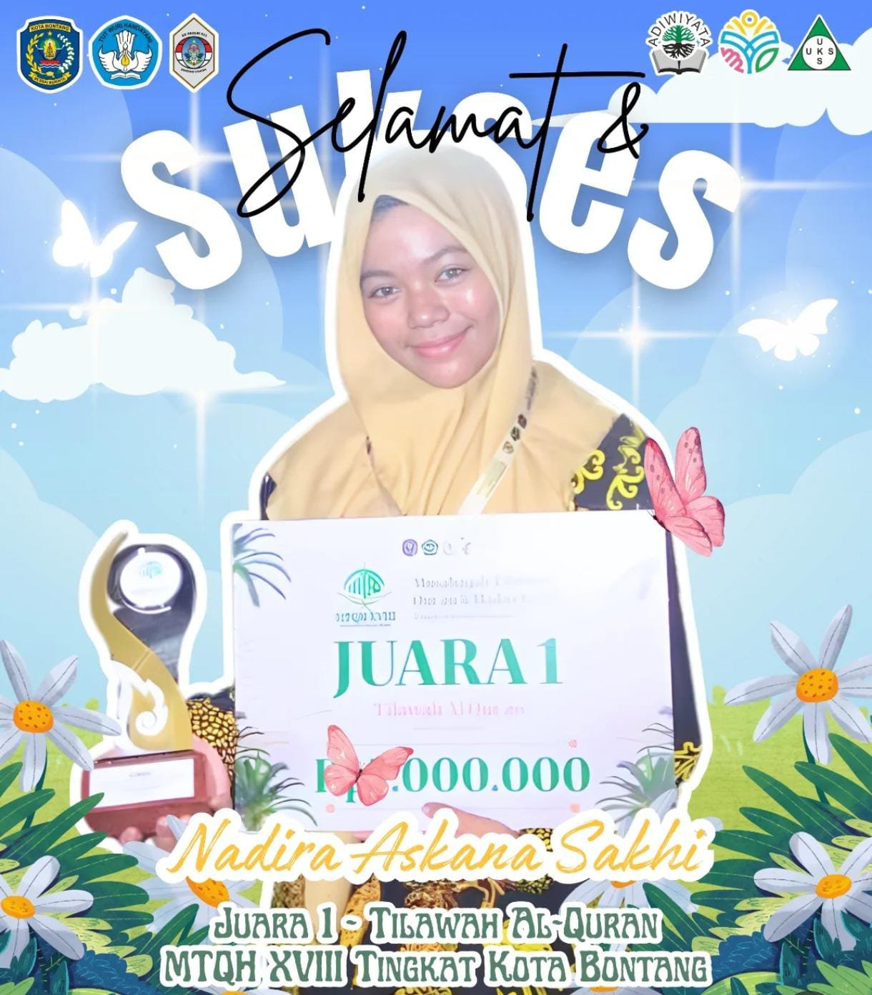 Prestasi Nadira di ajang MTQH XVIII menjadi inspirasi bagi seluruh warga sekolah untuk terus meningkatkan kemampuan dan kecintaan terhadap Al-Qur’an. (Adv/Azi)