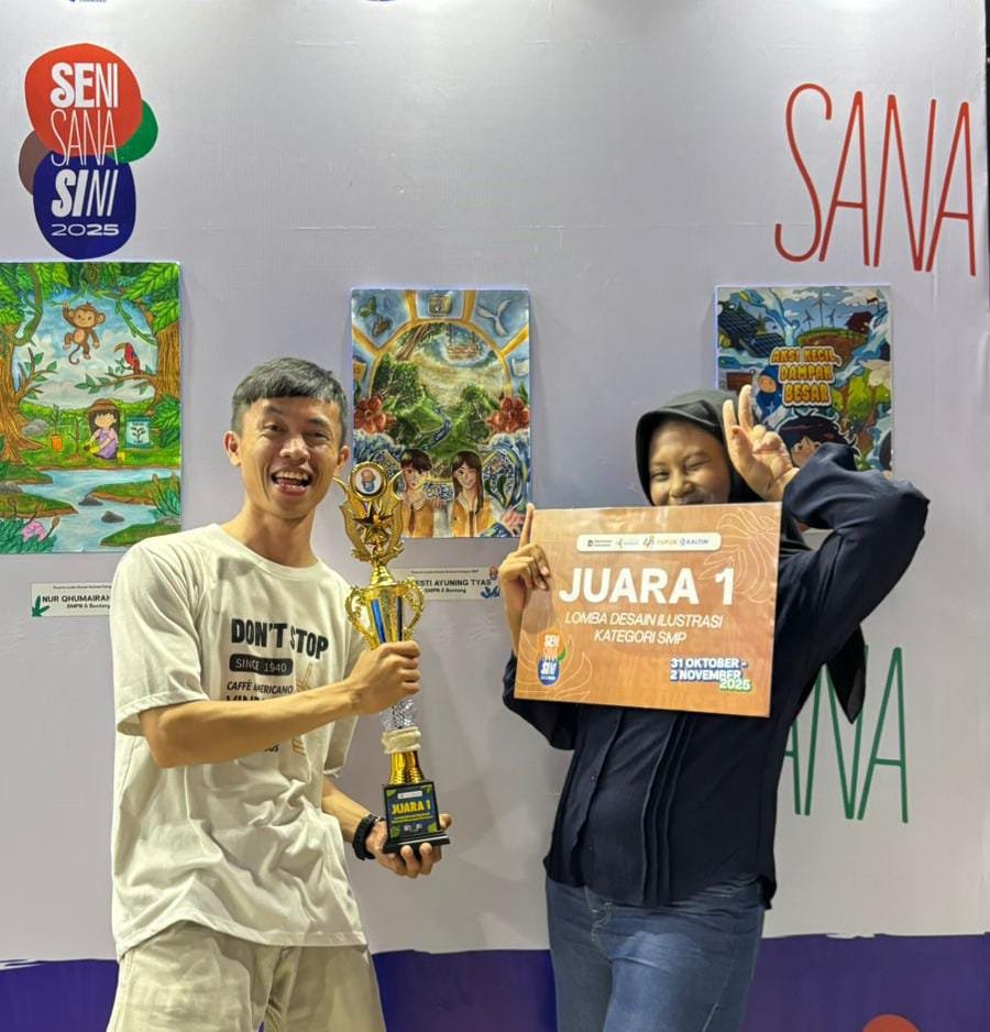 BONTANG – Seorang siswa SMPN 2 Bontang sukses mencuri perhatian juri dan publik dengan karya ilustrasinya yang memukau, hingga berhasil menyabet Juara 1 Kategori Ilustrasi Tingkat Pelajar dalam ajang Seni Sana Sini 2025 yang digelar oleh PT Pupuk Kalimantan Timur (PKT).
