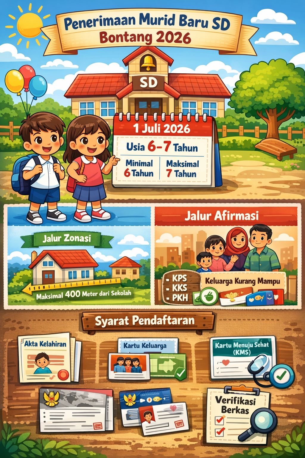 Selain usia, kelengkapan dokumen juga menjadi syarat wajib. Calon murid diminta melampirkan fotokopi akta kelahiran dan kartu keluarga, serta menunjukkan dokumen asli saat verifikasi.