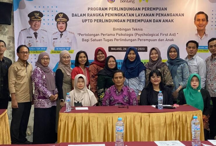 Satuan tugas perlindungan perempuan dan anak mengikuti Bimbingan Teknis (Bimtek) tentang pertolongan pertama psikologis, di Hotel Regent Park Malang. ...