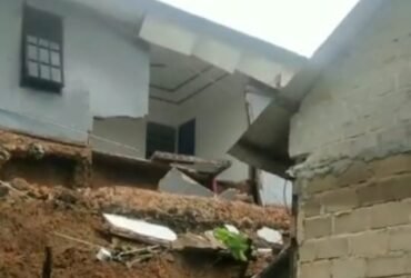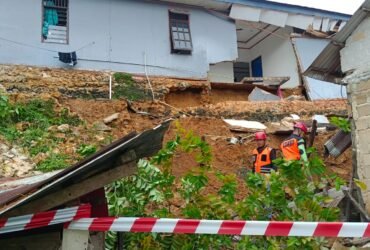 Satu rumah di Kelurahan Lok Tuan nyaris ambuk diterjang longsor sekitar pukul 11.00 Wita, Rabu (22/2/2023).