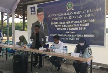 Anggota DPRD Provinsi Kaltim M Nasiruddin, menggelar sosialisasi Peraturan Daerah (Perda) Nomor 5 Tahun 2019 tentang Bantuan Hukum, di Tanjung Limau, Kecamatan Bontang Utara, Sabtu, 11 Juni 2022.
