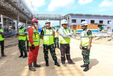 Dandim 0908 Bontang Letkol Arh Choirul Huda didampingi tim manajemen PT Wika, meninjau proyek pembangunan bahan peledak di kawasan PT Kaltim Industrial Estate (KIE).