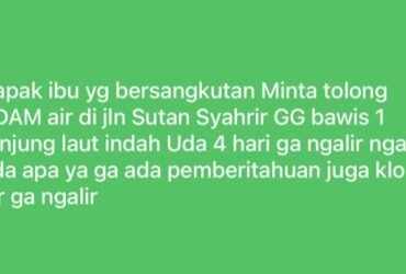 Dalam sepekan terakhir air PDAM tidak mengalir di beberapa wilayah Kelurahan Tanjung Laut Indah (TLI). Kondisi itu membuat warga geram, dengan melemparkan kemarahannya di media sosial.