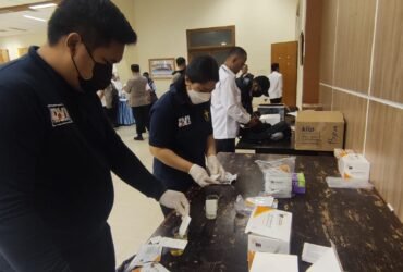 Badan Narkotika Nasional Kota (BNNK) Bontang melakukan tes urine dadakan di Kelurahan Lok Tuan. Senin pagi, 8 Mei 2023. Dua orang tenaga honorer dinyatakan positif sabu.