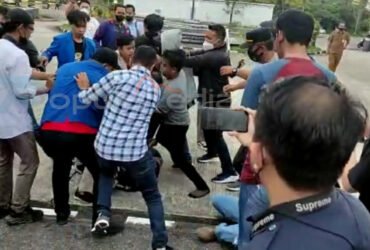 Aksi demonstrasi mahasiswa di Gedung DPRD Bontang sempat berjalan ricuh, hal tersebut dipicu perebutan ban yang hendak dibakar demonstran namun dihalangi polisi.